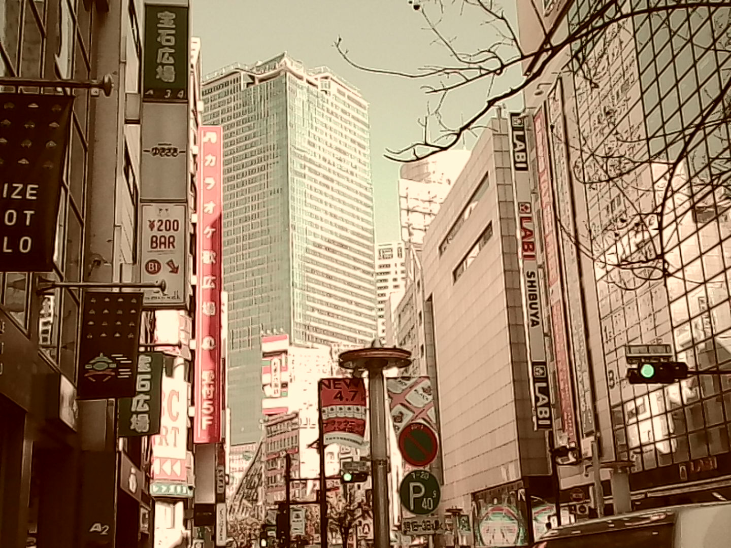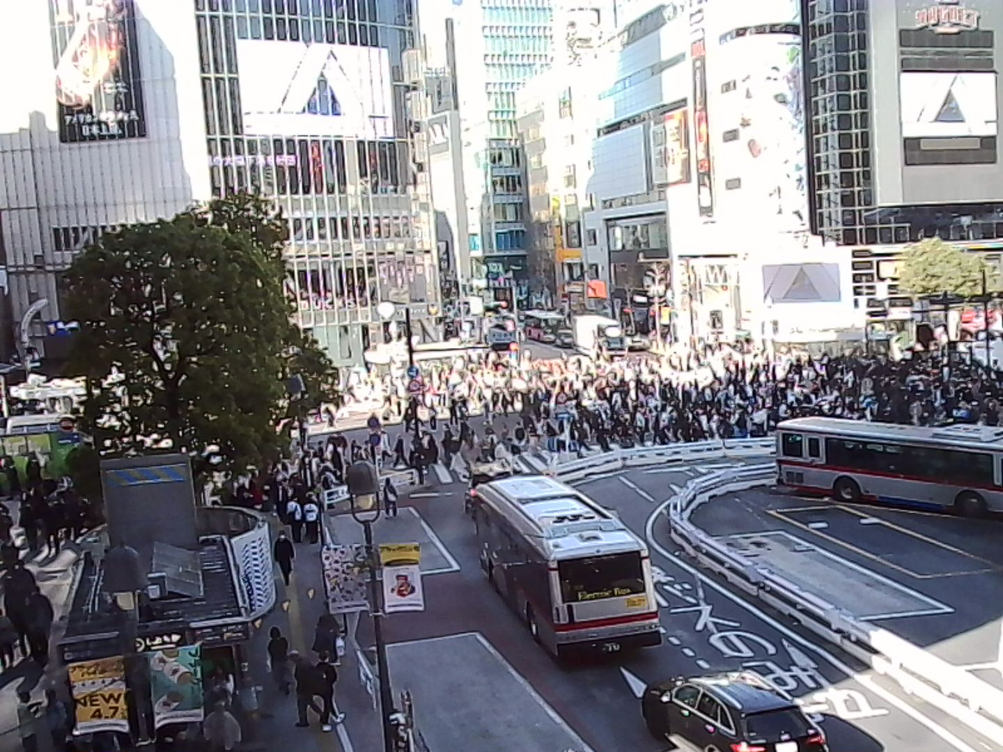 写し出された渋谷は、現在の都市でありながら、どこか時間の層がずれたような質感を持っていた。1987年にタイムスリップしたかのような、わずかにくすんだ色味と粗い解像感が、見慣れた景色に別の文脈を与えている。